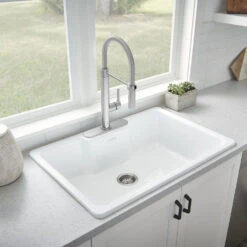 American Standard Monterrey Two Handle Bottom Mount Gooseneck Kitchen Faucet With Lever Handles