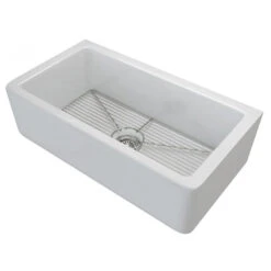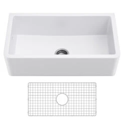 Turino Reversible 33″ Single Bow Fireclay Flat Apron-Front L Kitchen Sink With Bottom Grid