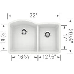 Blanco Diamond 33″ 1-1/2 Double Bowl Silgranit Dual Mount Kitchen Sink With Ledge