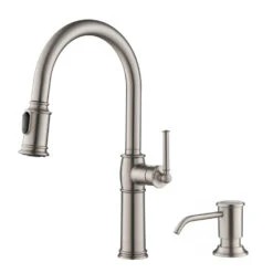 Sellette Traditional Single Handle Pull Down Kitchen Faucet With Soap Dispenser And Deck Plate