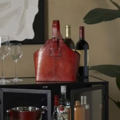 Wines Of The World Felt Wine Tote With Black Leather Accents – Gray