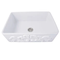 Vineyard 33″ Single Bowl Fireclay Farmhouse Kitchen Sink With Filigree Apron