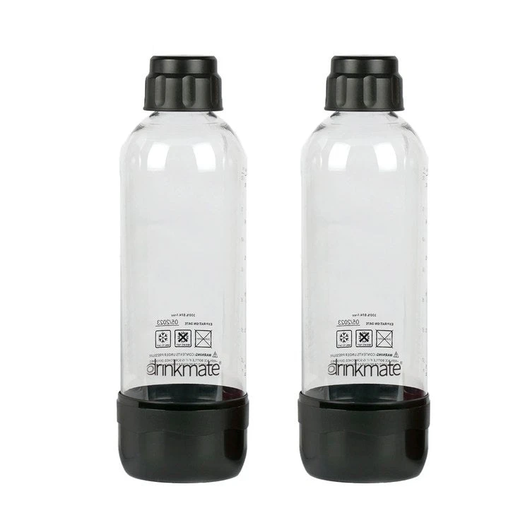 Having extra Drinkmate bottles lets you make and store different drinks. This twin pack of bottles includes fizz-preserving caps, and may be used for up to two (2) years after purchase date, or by the expiration date printed on each bottle. Features a removable bottom cap for easy cleaning. These 1-liter bottles are interchangeable on all Drinkmate Countertop and Drinkmate Spritzer units.