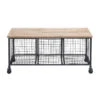 Keep your room stylishly tidy with this industrial black metal laundry basket cart. The wheat beige linen laundry bag breathes so as to not cause mildew or bad odors from damp clothes and is a light neutral color that will blend with any room’s decor. Easily remove the bag by the Velcro strips all the way around the rectangular laundry cart for easy washing, while also ensuring the bag doesn’t topple when packed with garments. More ease of use is highlighted with the smooth glide caster wheels that easily roll on any surface so you can pull or push your laundry swiftly with ease.