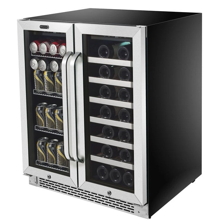 Store your favorite beverages with style in this Whynter 30″ Built-In French Door Dual Zone Wine Refrigerator and Beverage Center. It holds 88 standard 12 oz cans in its left zone, and 33 standard 750 ml wine bottles in its right zone, making it perfect for casual parties, dinners, or any other at-home beverage needs.