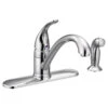 With its natural form and versatile function, a faucet from the Quince collection is the perfect complement to kitchens with casual decor. This single-handle faucet features cast brass construction, a 360-degree swivel spout, memory position valving to provide water at your preferred temperature, and an ADA-approved lever handle. The faucet measures 7-5/16″ high with an 8-5/16″ reach and delivers 2.2 gallons of water per minute. Includes a color-matched side sprayer, an optional 10-1/16″ escutcheon plate and braided, flexible stainless steel supply hoses with 3/8″ connections.