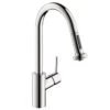 Upgrade your kitchen with the elegant transitional look of the KRAUS Ansel pull-down faucet, featuring a dual-function spray head with flexible hose and swivel adapter that offers effortless movement all around the sink.