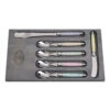- Includes one each: table fork, table knife, salad fork, coffee spoon, table spoon