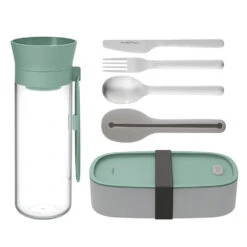 Whether you’re at school, at the office, or enjoying a cozy picnic, with this complete lunch set you can easily take a healthy meal with you on your daily adventures. The practical bento box is the perfect fit for a homemade lunch or snack which you can eat whenever and wherever you want with the three-piece stainless steel flatware set that comes in a convenient silicone sleeve for easy storage and transportation. When you feel like having a drink, just get out your water bottle that features a practical push-to-drink system for a 360-degree drinking experience and don’t forget to refill the bottle to keep yourself hydrated all day long.