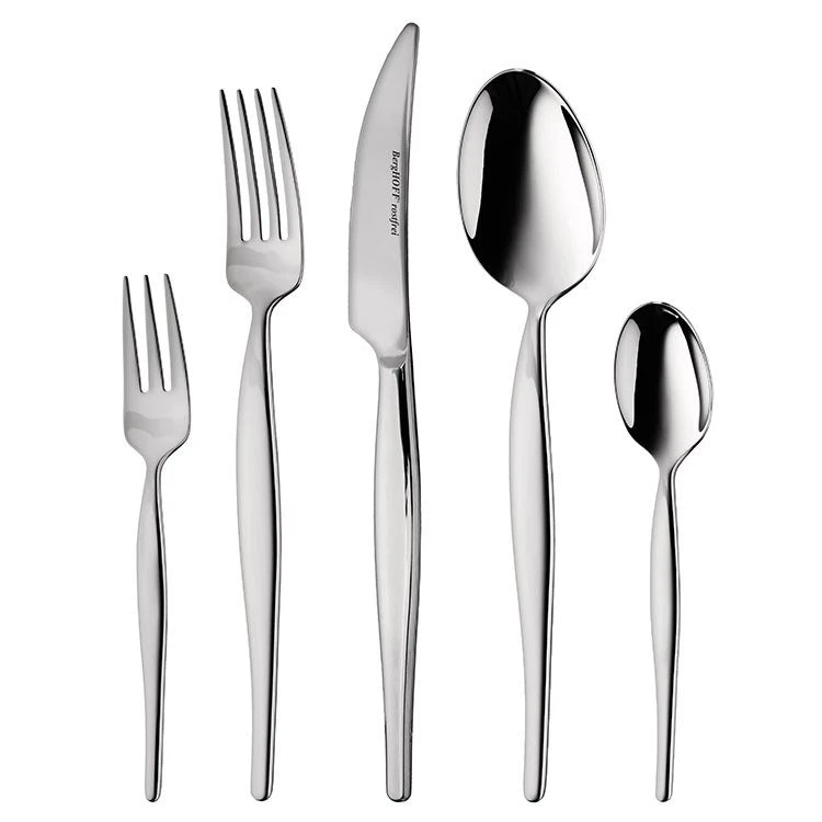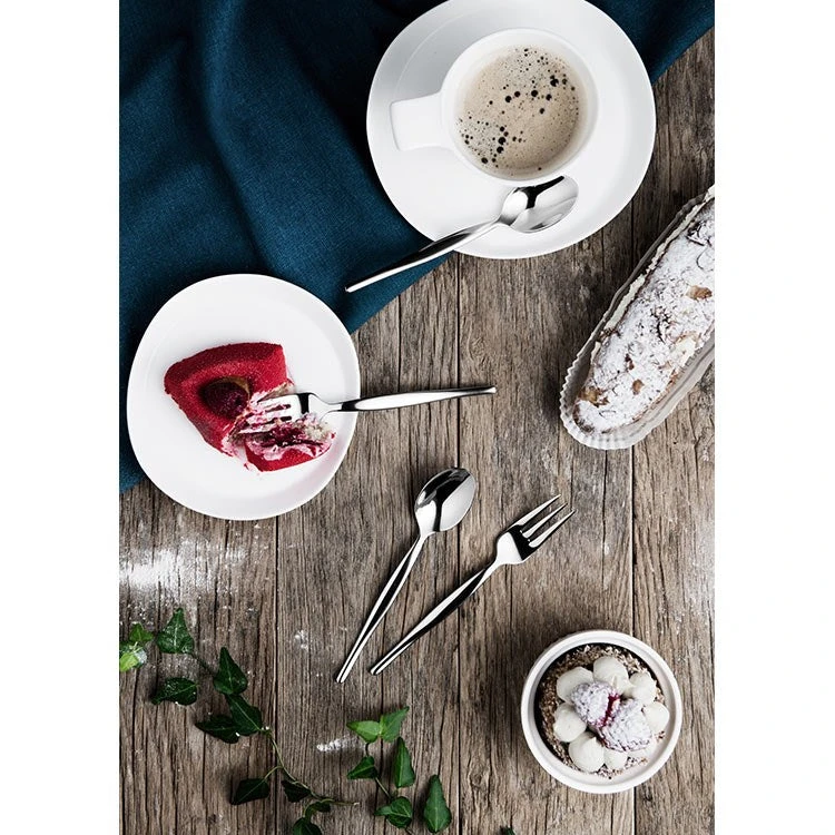 Whether you’re planning a gourmet dinner or you just want to add a dash of delicacy to your daily family meals, the Ralph Kramer Finesse flatware is the perfect addition to your table setting. The cutlery displays soft fluid curves that create an elegant silhouette. The handles’ fine edge and collar combined with the gently rounded body ensure the sleek cutlery is lovely to hold and will jazz up your dinner table at any time. The set includes six forks, a six spoons, a six knives, a six tea spoons, and six dessert forks.