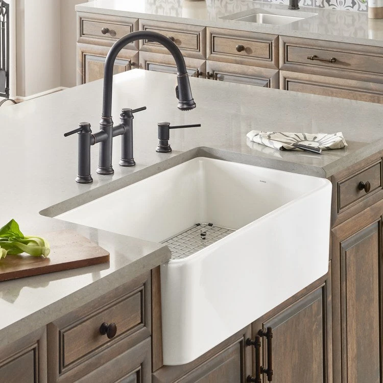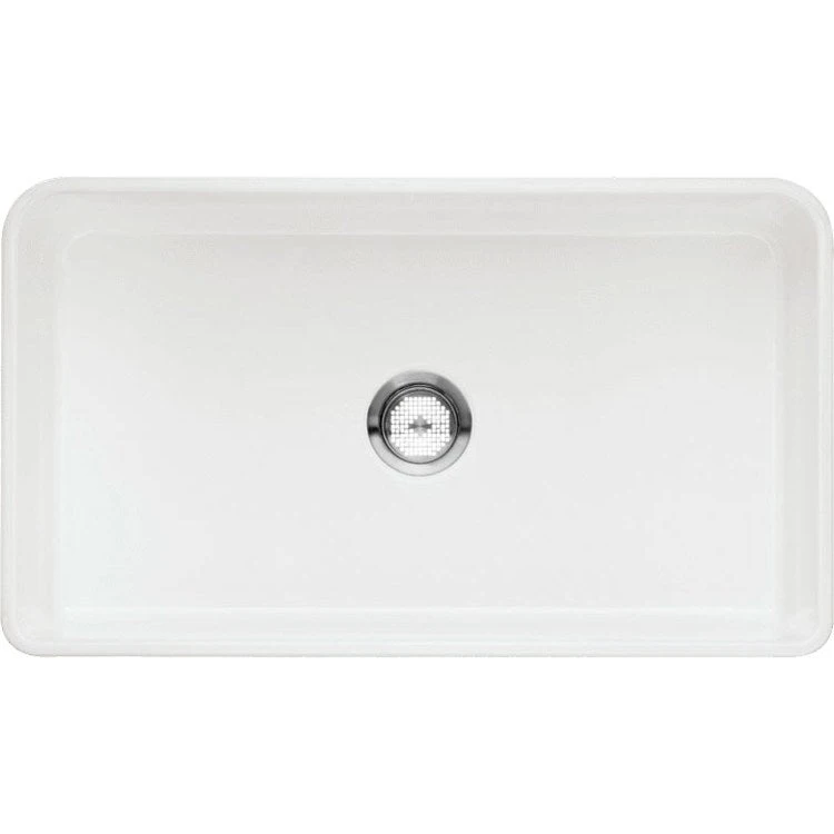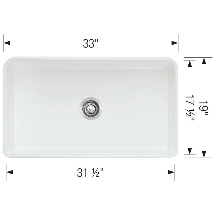 The Cerana II farmhouse sink is designed with an exquisite blend of durability and versatility, and fits in both traditional and modern kitchens. A reversible design with two different corner styles for added flexibility, this 33″ single-bowl apron-front sink features rounded corners on one side and square corners on the other. The white fireclay sink features a 31.5″ long x 17.63″ wide (front to back) x 9.25″ deep single basin.