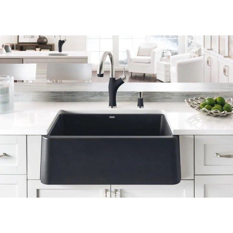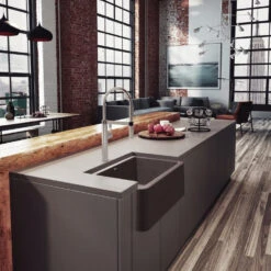 More than beautiful, the Ikon apron front sink is the perfect combination of design, function and durability. Made of Blanco’s patented non-porous Silgranit granite composite material, the sink resists scratches, chips, and stains from all household acids and alkali solutions, including coffee, tea, and red wine.