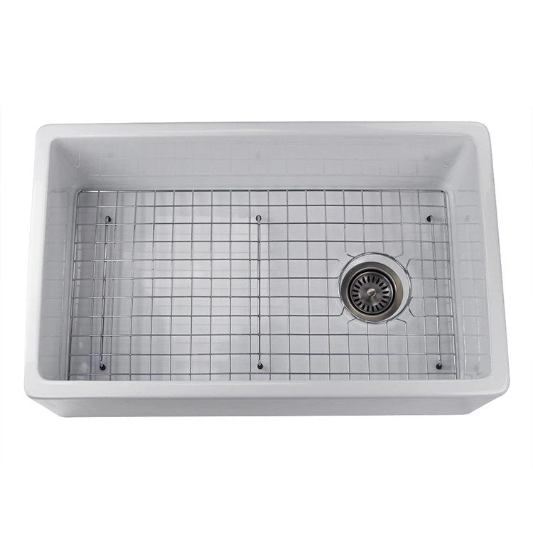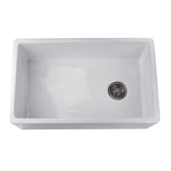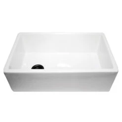 The FCFS30 is a large single bowl rectangular sink designed in a farmhouse apron style. Following the trend of ‘everything old is new again’, homeowners have discovered the utility and durability of farmhouse sinks. Made from dense fireclay with a porcelain enamel glaze that inhibits bacterial growth more than stainless steel, the sink requires less cleansers to make it more eco-friendly. This sink weighs over 100 lbs and requires a special cradle made to support the extra weight. Features a 10″ apron height, an included bottom grid to protect the basin from scratches, and a standard 3.5″ drain opening.
