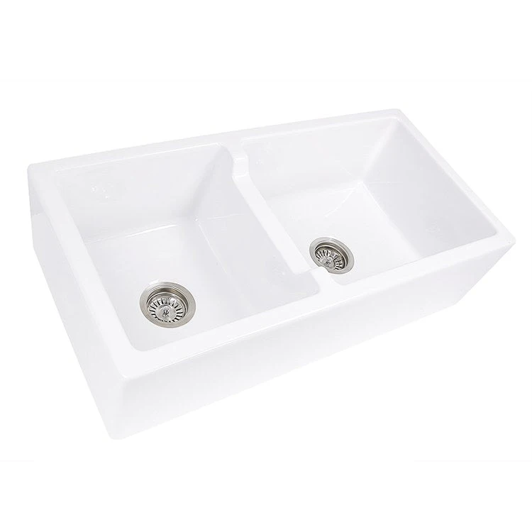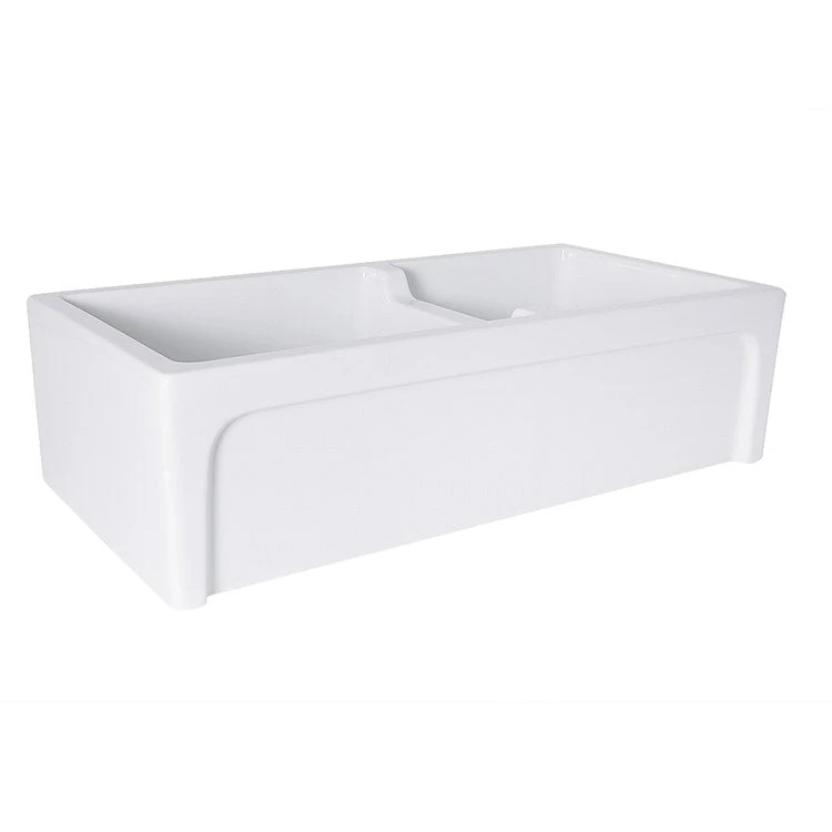 The Nantucket Sinks Hyannis-36-DBL is a 60/40 ratio reversible fireclay farmhouse sink. Choose from a decorative arch-style apron with curved alcove or plain apron front. Crafted in the artisanal traditions of Italy, this sink features a low-height divider for increased functionality. Easily organize cleanup and prep with the double bowl feature.