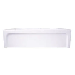 The eco-friendly, glazed fireclay surface inhibits bacterial growth more than stainless steel, making it easy to clean. Due to the firing process, dimensions are nominal and may vary to actual up to 0.25″. A custom cabinet is required to support weight of this sink. Minimum cabinet width recommended is 40″. If plain apron is shown, the small bowl will be on the left. With the decorative apron shown, the small bowl will be on the right.