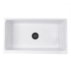 This Yarmouth-36W is a stunningly large single-bowl fireclay sink featuring a stylized decorative apron. The drain is positioned at the center, so you have a choice of 1.5″ or 2″ decorative lip to be featured on the apron. It’s Constructed from solid, heavy-duty fireclay with a polished white finish. Crafted in the artisanal traditions of Italy, this farmhouse-style sink adds character to your kitchen work space with its generous bowl size. There are many benefits to fireclay. Its glazed surface inhibits bacterial growth more than stainless steel. It is eco-friendly requiring less cleansers.