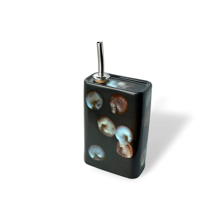 Carmel Ceramica’s Dappled collection will remind you of sitting under a shady old oak tree on a hot summer day enjoying the interplay of light and shadows on the ground. Dappled is also a leisurely stroll along a tree lined path on a sunny afternoon. This multi-glaze process achieves this beautiful effect. This beautiful oil drizzler will eliminate the need to hide your favorite olive or cooking oil in the cabinet. The stainless steel spout is held in place with a cork. Measures 7-3/4″ high x 4″ wide x 2 1/4″ long and 8 1/4″ to the top of the spout. Holds 16 oz. Durable stoneware that is dishwasher and microwave safe (not the spout). Made in Portugal.