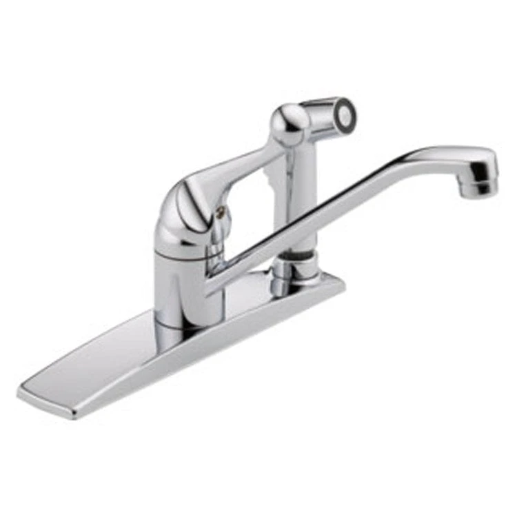 Built for performance and designed with an understated, elegant style, the Classic series will withstand the test of time in any kitchen setting. This single-handle kitchen faucet features a curved lever handle with a knobbed end for a more traditional look, an integral sprayer mounted in the deck plate, a solid brass fabricated body, and a standard, 8″ long spout that swings 360 degrees. An anti-siphon device is an integral part of the valve body. Includes 1/2″ – 14 NPSM adapters.