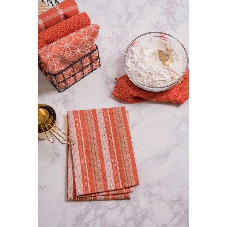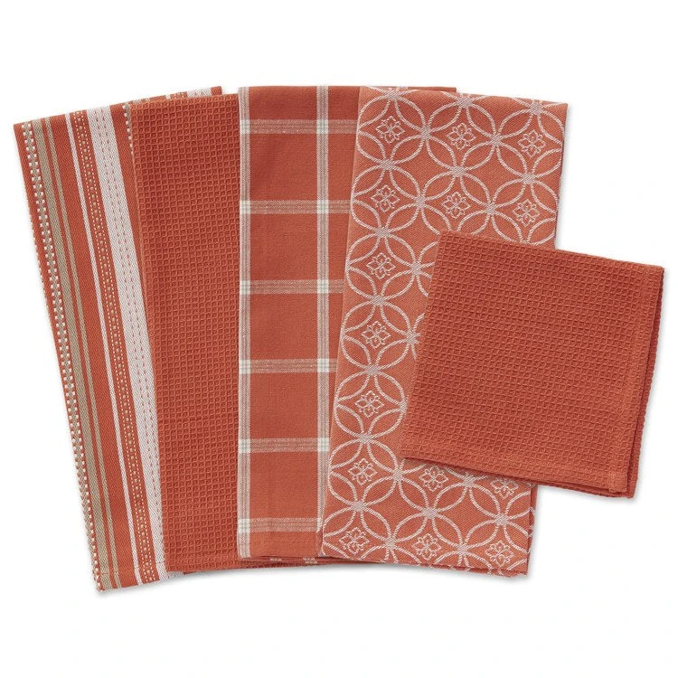 - Each set includes 4 dish towels measuring 18″ x 28″ and 1 dish cloth measuring 13″ x 13″ to tackle all of your drying and cleaning kitchen tasks