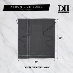 DII 100% cotton French Stripe Bistro Aprons come with the extra-long waist ties that can wrap around and tied in the front, the DII Adjustable Apron fits most sizes and is suitable for either men or women. The apron also comes with central pockets to hold onto seasoning packets, meat thermometer, grill slips, cellphone, or recipe cards.