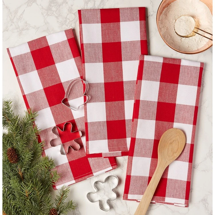 DII has created sophisticated Buffalo Check Dish Cloths and Towel Sets to help tackle all your kitchen duties. The towels are absorbent and dry fast by the corner hanging loop on the backside add a charming accent to your home with this timeless classic design dish towel set includes three towels and coordinate well with Design Imports checkered aprons, napkins, table runners, and placemats. Get the entire look!