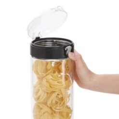 These Artland locking kitchen canisters are perfect for storing dry foods, baking ingredients and more. Use them in your pantry, in your cupboard, or on your kitchen counter to keep dry goods neatly organized and safely stored. The ABS plastic flip-top lids on the clear glass containers make dispensing easy. Dishwasher safe, the set includes one small, one medium, and one large canister.