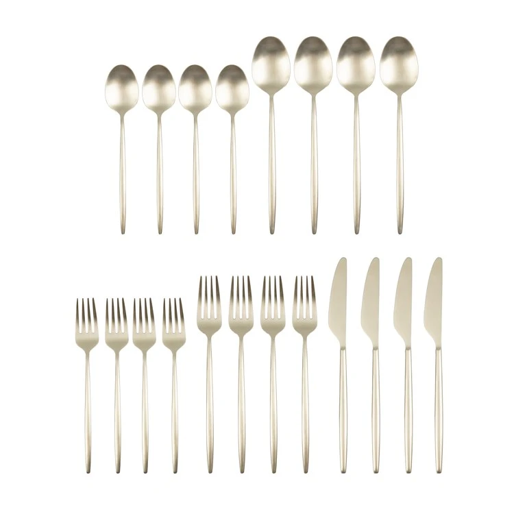 Elevate your favorite dinnerware and coordinate any table setting as you entertain! From Cambridge Silversmiths, Champagne Satin 20-piece Flatware Set is a forged service for 4 with a slender handle evokes a classic Scandinavian feel in a modern finish. They are suitable for everyday use or can be stored away for special occasions. This set is easy to maintain because they are dishwasher safe.