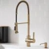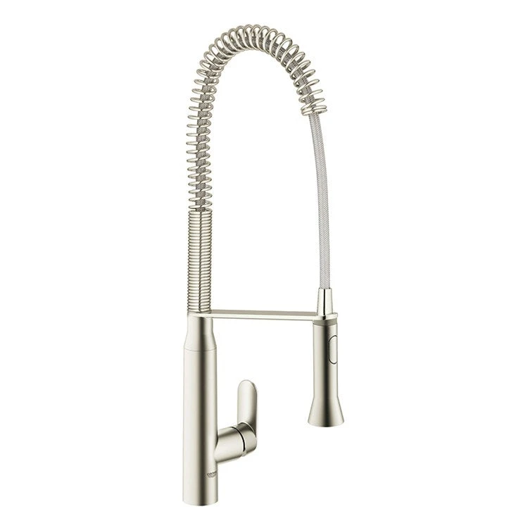 Designed for cooking enthusiasts, the K7 collection blends professional-level features and functional performance with a sophisticated style for the modern kitchen. This tall professional style, single handle kitchen faucet features a 140-degree swivel spout, a pull-down sprayer with an exposed hose surrounded by a stainless steel coil, an adjustable flow rate limiter, SpeedClean flow control, and a metal lever handle. Measures 26-9/16″ high overall with a 9-3/16″ spout reach. Includes stainless steel, braided flexible supply hoses.