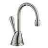 This two-handle, single-hole faucet dispenses hot and cold water when you want water for a quick cool drink or a hot beverage such as tea. Spring-loaded lever handles let you easily turn the water flow on and then return to the closed position once released. The faucet features a forged brass construction, a spout assembly with integral supply hoses, and ceramic disc valve cartridges to ensure smooth, drip-free performance. The faucet measures 9-3/8″ high with a 4-3/4″ spout reach.