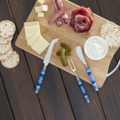 The handles of this stunning cheese knife, spreader, and fork feature fresh, crisp, and cool shades of blue denim, bringing a vibrant energy to any table. Ideal for entertaining, putting together a delicious cheese board, and gift giving.