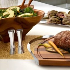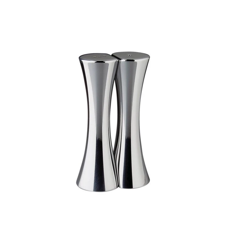 The clean, elegantly flared shape of the Kissing salt and pepper shakers is enough to catch the eye, but the fact that they “kiss” captures the heart. Each shaker features flat planes at the top and bottom where the two seem to meld as one.