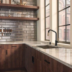 Art meets craft. The Litze Kitchen Collection melds innovative engineering and artistry to strike a balance that is equally at home in modern classic environments and urban industrial spaces. This single-handle pull-down kitchen faucet features a knurled lever handle and a 360-degree rotating, angled spout with a pull-down spray wand. The two-function sprayer offers aerated and stream sprays and features dual integral check valves to prevent backflow. The sprayer securely docks back in the spout using MagneDock magnetic docking technology.