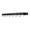 This medium-gauge oval hanging pot rack lets you store your pots and pans up and out of the way while remaining easily accessible when it’s time to cook. The rack is made of sturdy steel with an easy-care Graphite finish. Includes grid, 12 hanging hooks, 23-feet of hanging chain, and mounting hardware.