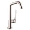 This two-handle, single-hole bar/prep faucet features a forged brass body with an integral rotating, high-arc spout, and cross-style handles. Ceramic disc valve cartridges ensure drip-free performance for the life of the faucet. The spout assembly comes with integral supply hoses. Measures 13-5/16″ high with a 5-1/4″ spout reach.