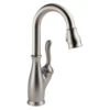 This single-handle bar/prep faucet features metal construction, an easy-to-use lever handle, and a high-arc, 360-degree rotating spout that provides the height and reach for fill or cleaning large pots. The faucet measures 11″ high with a 7-1/4″ spout reach. Includes flexible supply lines with 3/8″ compression fittings.