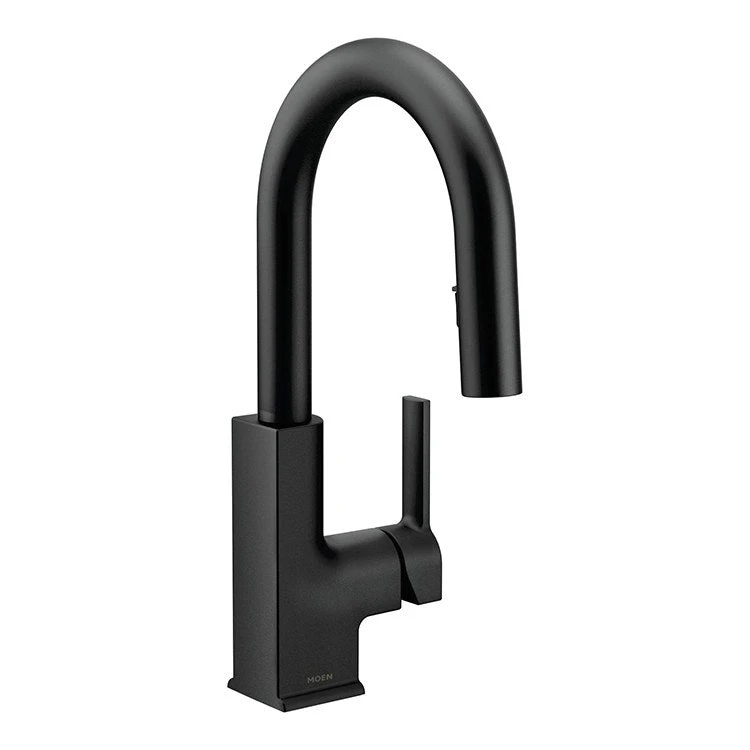 The Moen Matte black one-handle high arc pull down bar faucet reflects the diverse selection of thoughtfully designed kitchen and bath faucets, showerheads, accessories, bath safety products and kitchen sinks from industry leader Moen. Each Moen product delivers the best possible combination of innovation, useful features, and lasting value.