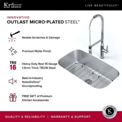 Designed to handle the demands of the busiest kitchen, the Kraus Outlast MicroShield scratch-resist Stainless Steel sinks offer maximum durability, even with heavy use. The engineered material masks scratches and scuffs, retaining a like-new appearance.
