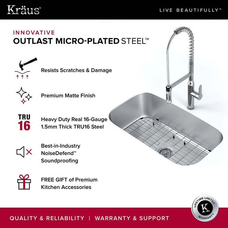 - Backed by Kraus Manufacturer’s lifetime limited warranty