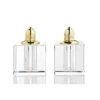 What is life without salt? You know the answer – it’s bland! These Pinstripes handcrafted 3″ high lead-free crystal salt and pepper shakers will add some spice to your table. Each shaker features a square, hand-cut shape in clear crystal with clean cuts across its body and a Gold top. They offer a chic, contemporary style with a little something extra. Set of two shakers.