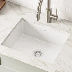 - Unique modern design: the only enameled sink on the market with tight-radius corners that create a clean modern look and maximize usable workspace in the sink bowl