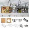 The P1254-18 triple bowl undermount sink is constructed from 18-gauge Series 304 stainless steel. The surface has a brushed satin finish to help mask small scratches that occur over time to keep it looking beautiful through years of use. The sink features two equal sized basin at each end with a smaller center basin that’s perfect for presoaking utensils, prepping vegetables, or rinsing small items. The sink is fully insulated and comes with sound dampening pads. Strainers are not included and sold separately.