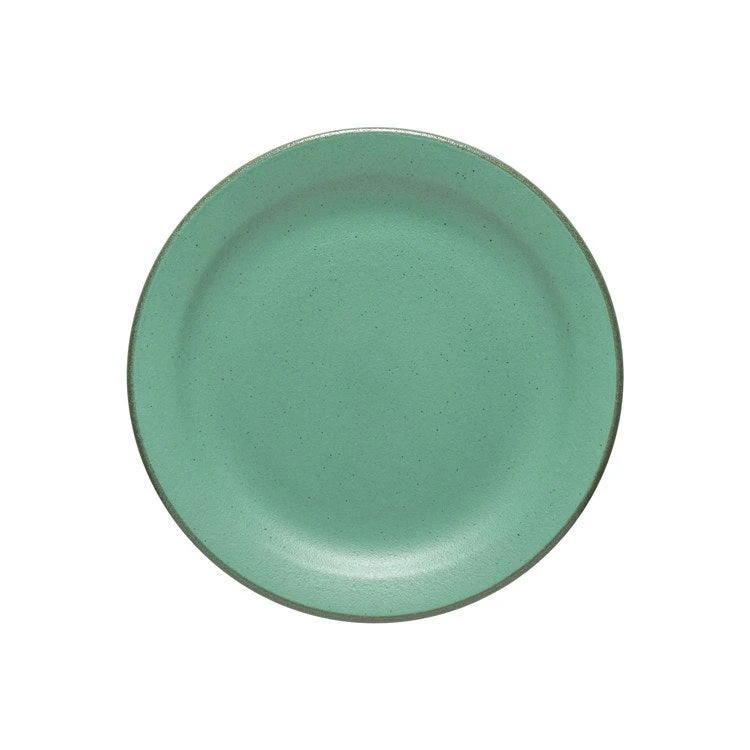 - Finish: Matte green glaze finish with small speckles and handpainted rim
