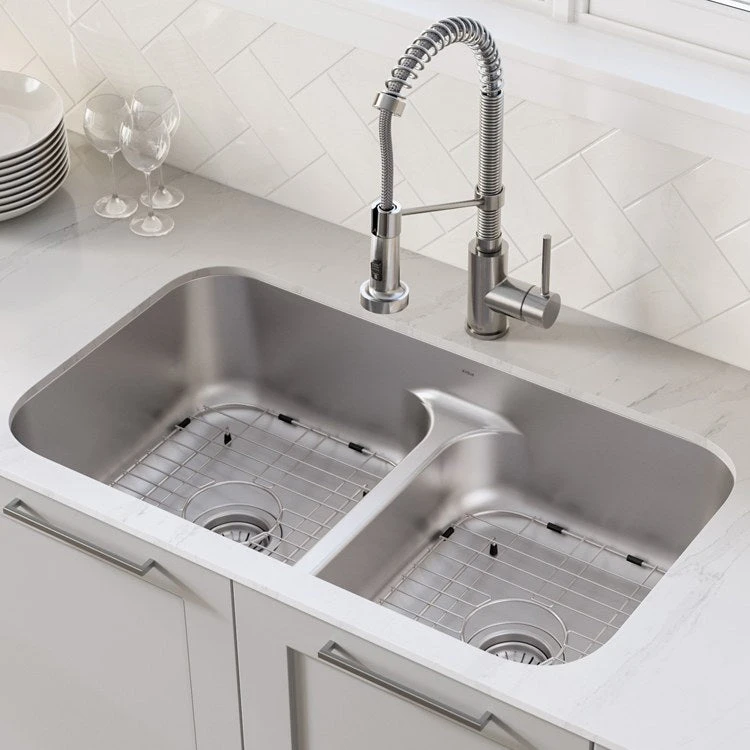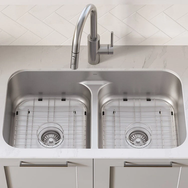 A streamlined sink with a classically inspired look and generously rounded easy-to-clean corners. Featuring a smart design with low divider, this high-capacity double bowl sink allows you to wash large items over both sink bowls while preventing overflow onto the kitchen counter. Designed for seamless undermount installation with a variety of kitchen countertops.