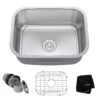 This 32″ undermount Pro Series rectangular sink featrues 90-degree corners for additional space and a fresh modern, industrial look. The bottom of the 10″ deep basin has channel grooves to divert water for proper drainage. The satin finish makes daily maintenance a simple rinse!