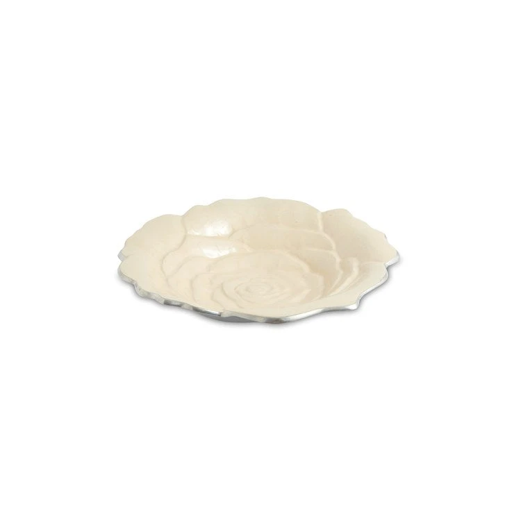 Delightfully darling, the lovely Rose 12″ Bowl will add charming detail to every table. Perfect for sides, salads or your family’s favorite dessert, this piece is sure to bring you and your guests whimsical joy. Crafted with the crushed mother of pearl infused enamel and the signature thumbprint swirl, each piece truly one-of-a-kind. Create a bright and blossoming table when you mix and match vibrant color options from the rest of the Flower Collection or pull from Peony and By the Sea Collections for an unforgettable enchanting mix. You can also create a beautiful and bold statement by pairing the Gold Roses with the stunning Florentine Collection – the ideal coupling! The Flower Collection is sand-cast aluminum, food safe and able to go into the oven up to 250 degrees.