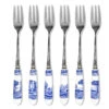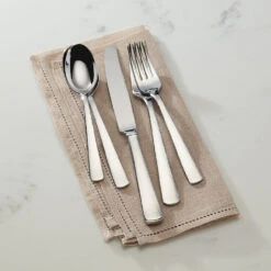 - Set includes a dinner fork, salad fork, dinner spoon, teaspoon, and dinner knife