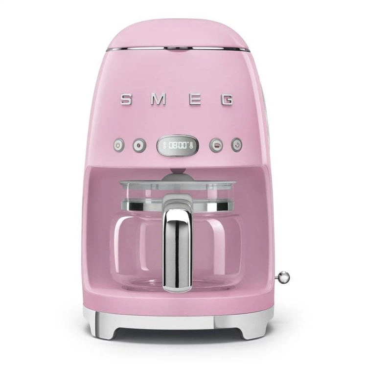 Enjoy your morning cup of Joe with a touch of nostalgia when you brew it in this retro 10-cup drip filter coffee machine. The coffee maker features a full-metal body with a powder-coat finish, 10-cup capacity glass carafe with handle and lid, a 4-cup function, aroma intensity function for light or intense settings, an anti-drip system, adjustable water hardness, and a keep-warm function. The water tank has a level indicator to let you know when to refill it and a digital LED programmable display with auto delay function and clock lets you preset your pot to brew when you want. Includes a measuring scoop for ground coffee.