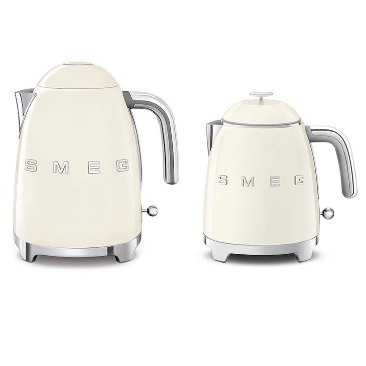 Known for its 50’s retro-look kitchen appliances, Italian-based Smeg brings their iconic style to this electric kettle. Combining mid-century design and modern technology, this small appliance lets you heat up water for tea, hot cereal, and more. The 3-cup capacity kettle features an integrated stainless steel removable limescale water filter, internal water level indicator (minimum and maximum level), double-wall design, a stainless steel lever with “on/off” LED indicator, and a soft-opening lid.