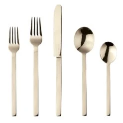 - Includes one each: table fork, table knife, salad fork, coffee spoon, table spoon