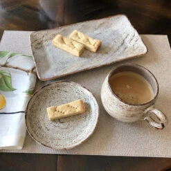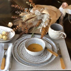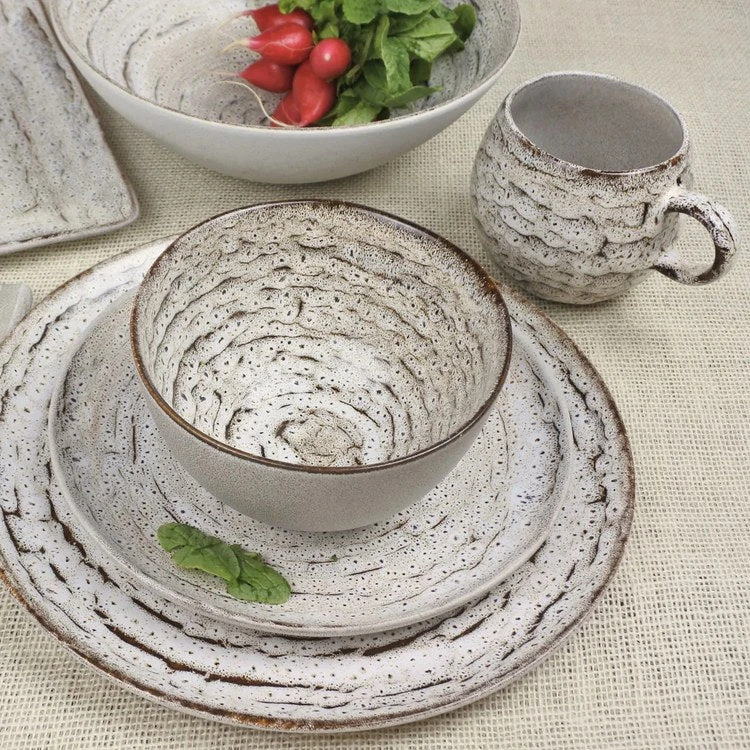 Earthy tones of brown, white, and cream accentuate the beautiful look of the Truffle collection. The pattern will remind you of foraging through the forest, searching for a coveted truffle with all that flavor. Each mug in this lovely set of four is 3-1/2″ in diameter and 4″ tall. Holds about 16 oz. Created by Carmel Ceramica with a labor-intensive, multi-glaze process. Made of microwave and dishwasher safe ceramic stoneware. Made in Portugal.